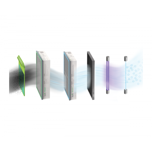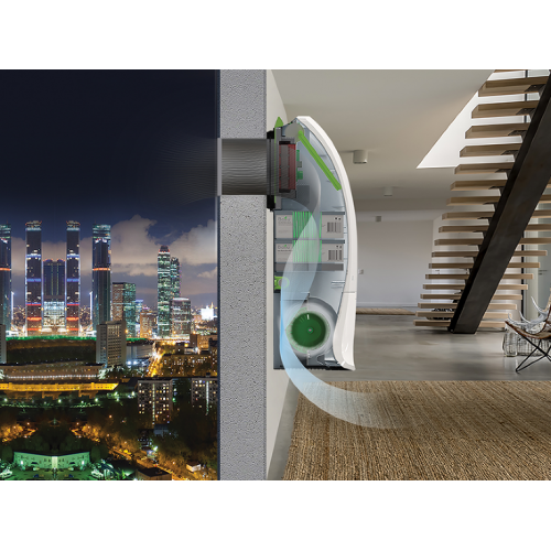 Schimbul de aer de până la 200 m3 pe oră se realizează datorită unui ventilator cu zgomot redus, care furnizează efectiv aer purificat în cameră.